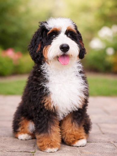 Breeze is a striking saddle Tri Merle Micro Bernedoodle with a confident yet nurturing presence. She carries herself with quiet intuition and a calm, steady demeanor that makes her a wonderful mamma dog. Known for her deep saddle gene and rich tri patterning, Breeze combines beauty with a grounded, attentive nature, always tuned in to her surroundings and those she cares for.