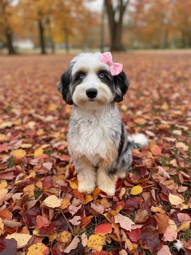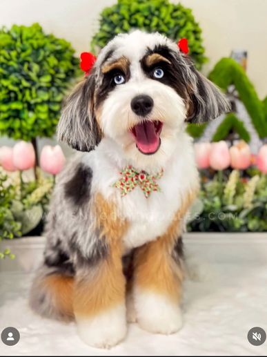 Opps is a special Micro Tri Merle Bernedoodle held back from Lady’s litter as part of our legacy lines. She has a delightfully quirky personality and a sweet, playful nature. Deeply bonded to her Goldendoodle sister, Opps thrives in a loving home environment and brings joy with her expressive character. She is currently living with one of our local guardian families who has shared in her beautiful puppy journey with us.